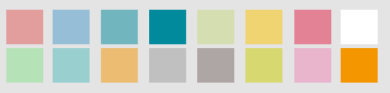 Colour MFW: company guideline colour scheme and used at both 100% and 50% opacity for muted tones to make the colours complimentary.