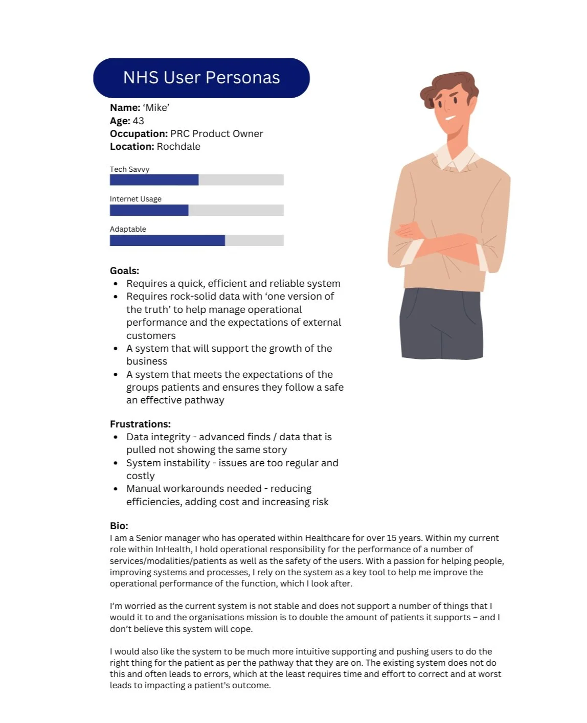The project was to update the current system and change the UI of xRM1, a complex application that affected the patient pathway for both users and patients. The purpose of the upgrade was to increase business efficiency and give additional time for clinicians to attend to patients.